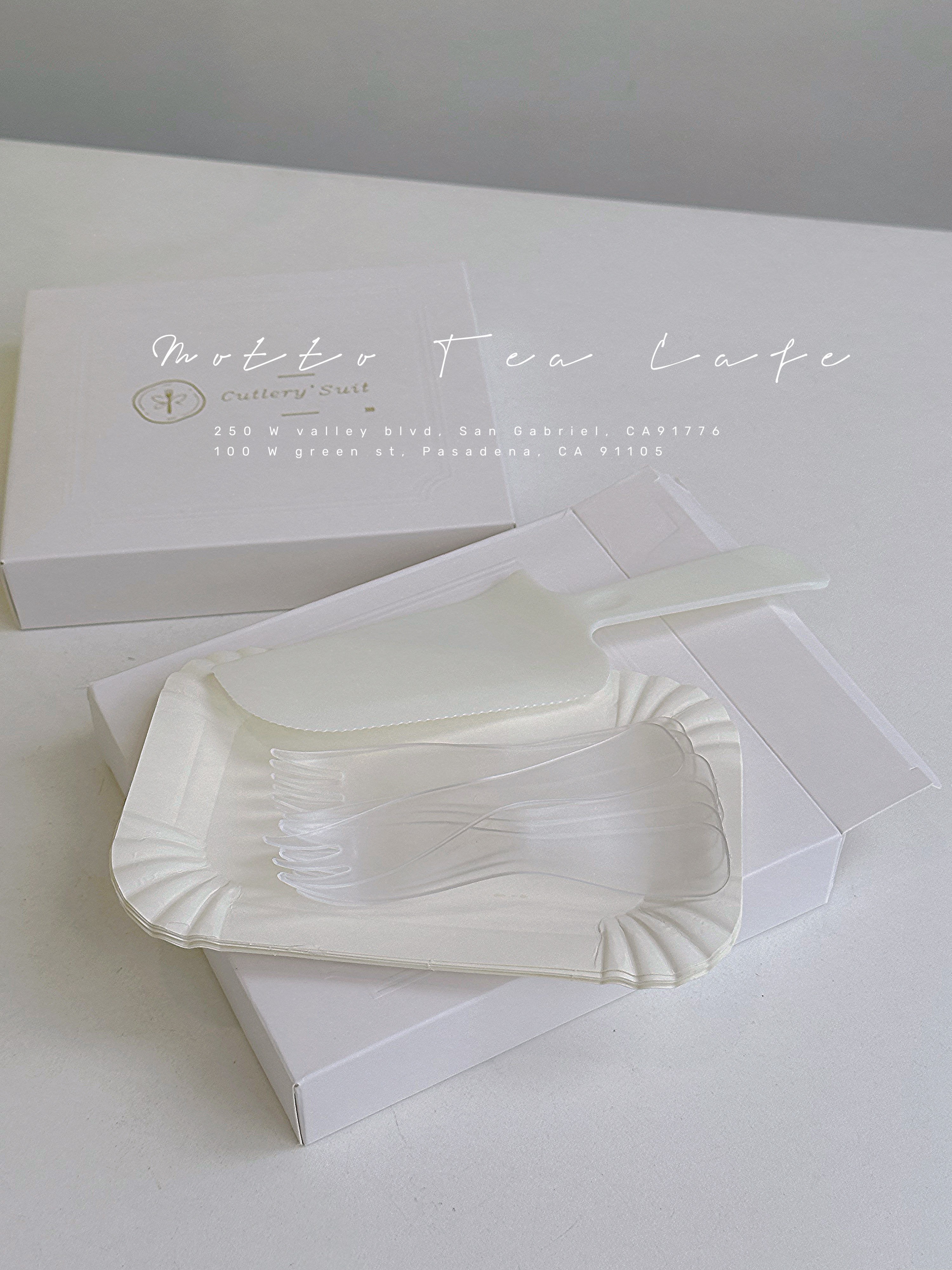A set of cutlery includes: knife x 1, fork x 10, plate x 10.